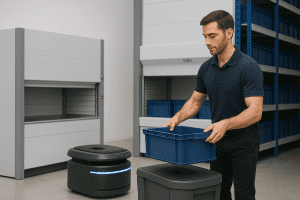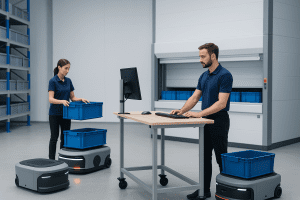 Automation eliminates unnecessary travel instantly. Systems such as VLMs, autonomous mobile robots (AMRs), automated guided vehicles (AGVs), and goods-to-person solutions transform workflows by bringing the product to the picker, not the picker to the product.