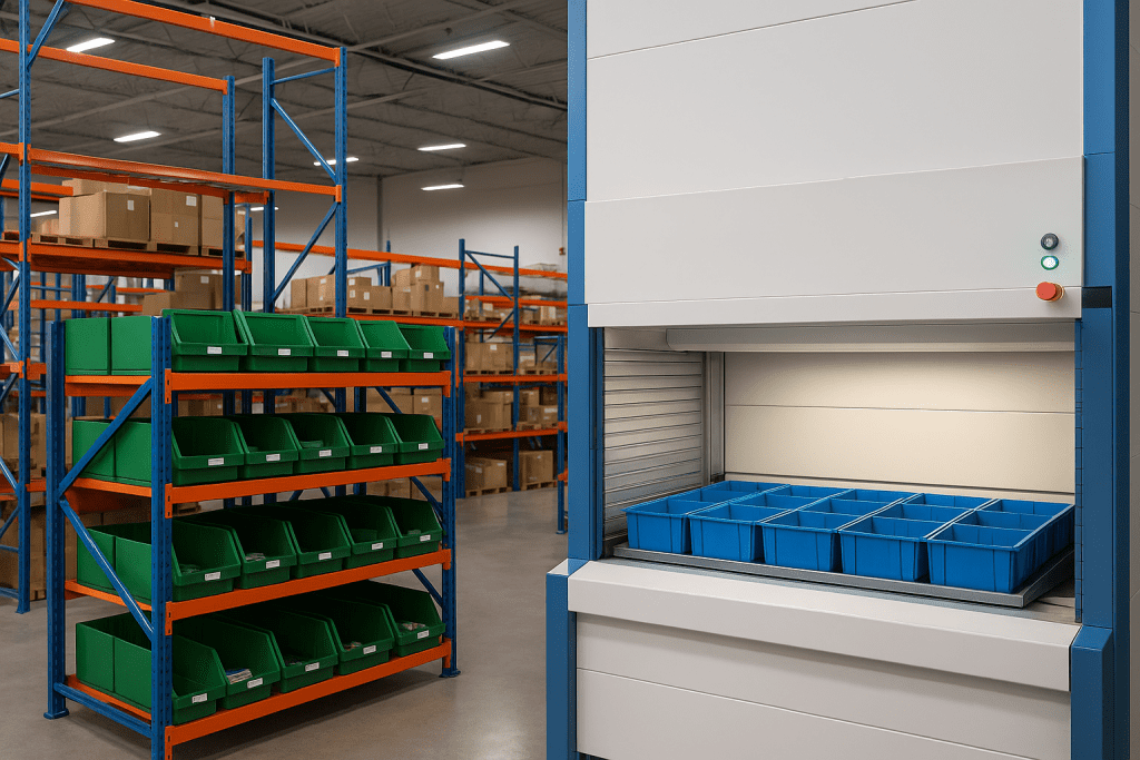 VLMs are especially valuable in industries with high part variety or traceability requirements — aerospace, medical device, manufacturing, and MRO facilities all see rapid payback from vertical storage.
