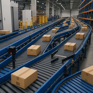 Conveyor and automated sortation systems use synchronized belts, sensors, barcode scanners, and software-driven diverters to move, track, and route items throughout a warehouse. Each item is identified at an induction point—via barcode, RFID, or vision scanning—and the system’s WMS/WES/WCS determines the correct destination. As items travel through the conveyor network, sortation mechanisms such as sliding-shoe, pop-up wheel, tilt-tray, or cross-belt modules divert them precisely at the right moment.